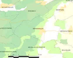 La comuna se ubica en los límites del Parque natural regional de los Vosgos del Norte. Limita al norte con Sparsbach, al noreste con Weinbourg, al este con Obersoultzbach, al sureste con Bouxwiller, al sur con Neuwiller-lès-Saverne, al oeste con La Petite-Pierre y al noroeste con Erckartswiller.