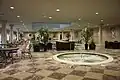Algunos anuncios iniciales afirmaban que el hotel tenía más de 700 habitaciones, pero la mayoría de las fuentes informan que el total era de alrededor de 500. El edificio principal constaba de seis plantas. La planta baja albergaba el vestíbulo, las oficinas de la dirección del hotel, el comedor, las tiendas y las salas de reuniones; saunas y baños minerales se ubicaron en el piso superior; las habitaciones de huéspedes, construidas en dos círculos concéntricos alrededor del atrio, estaban ubicadas en los pisos segundo a quinto. Las habitaciones del anillo interior ofrecían vistas al atrio, mientras que cuarenta habitaciones de los pisos cuatro y seis tenían balcones con vistas al atrio.[3][26] Las habitaciones del hotel eran pequeñas para los estándares modernos. La mayoría tenía una o dos camas individuales y carecían de baño privado.[26]