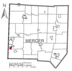 ![]() Ubicación en el condado de Mercer ![]() Ubicación del condado en Pensilvania ![]() Ubicación de Pensilvania en EE. UU. | ||