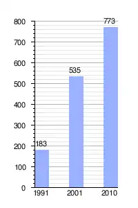 | Variación intercensal | + 44,5 % (2001-2010) | |