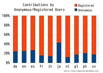 Las contribuciones anónimas son menores en comparación con las contribuciones de los usuarios registrados.