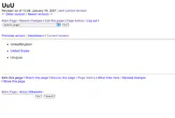 El artículo «UuU», creado el 16 de enero de 2001, es aceptado como el artículo actualmente existente más antiguo de Wikipedia. Apareció en la Wikipedia en inglés y así es como puede verse aquella primera edición, recurriendo al historial.