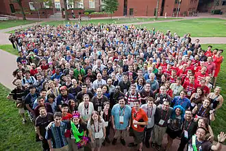 Wikipedia está siendo editada por miles de personas en todo el mundo.[133] Con excepción de ciertas personas remuneradas por la Fundación Wikimedia,[134] el resto, conocidos en la jerga de Wikipedia como «wikipedistas», actúan siempre de manera gratuita y voluntaria.[135] En total, la comunidad está conformada por más de 400 millones de usuarios registrados en todo el mundo,[136] incluyendo algo más de 7 000 000 en la versión hispana, donde el 13 % son mujeres.[137]