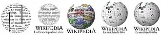 Desde su inicio en 2001, Wikipedia ha utilizado diferentes marcas corporativas. El elemento común en todas ellas es una esferaescrita como elemento central, simbolizando el mundo y el conocimiento.