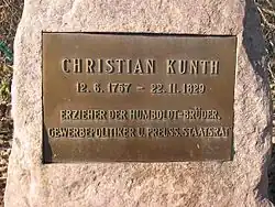 Los padres contrataron a varias personas de renombre para la educación de sus hijos. Entre ellos Joachim Heinrich Campe y, desde 1777 y durante más de diez años, Gottlieb Johann Christian Kunth, que coordinaba y planificaba la educación, además de supervisar a los diferentes profesores. Como preparación para su formación universitaria, los estudios incluían macroeconomía, estadística, derecho natural y filosofía. Kunth, que también había conseguido una posición de confianza en la administración de las propiedades de los Humboldt, se convirtió, tras la muerte de su patrón, en un consejero imprescindible para la viuda y también en el administrador de los bienes de los hermanos Wilhelm y Alexander. A cambio, Wilhelm impulsó más tarde el ascenso de Kunth a colaborador del Barón de Stein durante la era de las reformas en Prusia y, además, cumplió el deseo de Kunth de ser enterrado en el panteón familiar en Tegel tras su muerte en 1829.