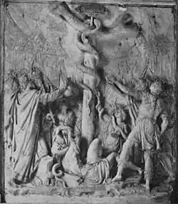 - ↑ a b Important relief du Calvaire, Augsbourg, vers 1562, par Willem Van den Broeck dit Guilielmus Paludanus at Sotheby's (en francés)