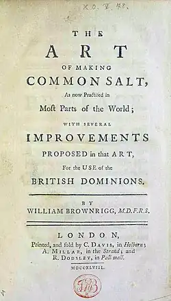- ↑ The Art of Making Common Salt... por William Brownrigg. Publicado en 1748 por C. Davis