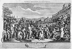 William Hogarth (Londres, 10 de noviembre de 1697-id. 26 de octubre de 1764) fue un artista británico, grabador, ilustrador y pintor satírico. Se le considera pionero de las historietas occidentales. Su obra varía desde el excelente retrato realista a una serie de pinturas al estilo de los cómics llamadas «costumbres morales modernas». Mucha de su obra, que llega a veces a ser despiadada, se burla de las costumbres y la política contemporáneas. Es el gran maestro de la sátira social y política, en contacto directo con la literatura contemporánea de un Henry Fielding. Se le considera uno de los padres de la escuela artística británica, tras varios siglos de predominio de artistas extranjeros en el país.