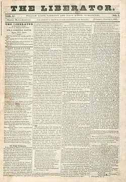 En 1831, Garrison regresaba a Nueva Inglaterra para fundar un periódico semanal antiesclavista por su propia cuenta, The Liberator. Como resultado de sus artículos, se iniciaría una guerra de treinta años que terminaría con la supresión de la segregación racial justificada. En su primera línea, Garrison sostenía: