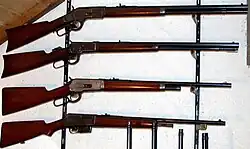 El Winchester es un arma creada en 1866 cuyo nombre, producto de su amplia difusión y pese a no ser el primero en su tipo, ha llegado a ser sinónimo de “fusil de repetición” con acción de palanca de la segunda mitad del siglo XIX; es decir, de aquellos primeros fusiles y carabinas que permitían disparar varias veces sin necesidad de efectuar una recarga, desalojando el casquillo usado y reemplazándolo por un cartucho nuevo mediante el accionamiento de una palanca unida al guardamonte. Este modelo fue fabricado por iniciativa de Oliver Winchester, presidente de Winchester Repeating Arms Company, basándose en la copia y mejora del anterior fusil Henry, patentado en octubre de 1860 y que era fabricado en otra de las compañías de propiedad del mismo empresario.