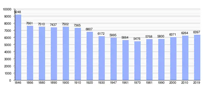 Todos los datos históricos relativos al actual municipio, el siguiente gráfico refleja su evolución demográfica, incluyendo municipios después de efectuada la fusión el 1 de enero de 1977.