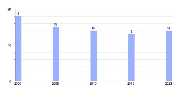 | Gráfica de evolución demográfica de Xagrada entre 2000 y 2023 |