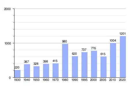 En 2020 registró una población de 1201 personas, lo que corresponde al 1.04 % de la población municipal.[7] De los cuales 606 son hombres y 595 son mujeres.[7]