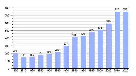 En 2020 registró una población de 747 personas, lo que corresponde al 4.08 % de la población municipal.[8] De los cuales 354 son hombres y 393 son mujeres.[8]
