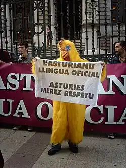- ↑ Rojo, Iratxe (16 de octubre de 2021). «La oficialidad del asturiano mide su apoyo en las calles». El Mundo. Consultado el 25 de enero de 2022.