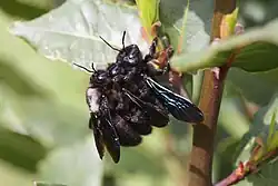 Se alimenta de polen y néctar que recolecta visitando flores diversas, por lo que es un excelente polinizador. Construye nidos en la madera perforándola con sus mandíbulas, donde excava varias galerías paralelas que desembocan en una abertura única. En la primavera deposita una docena de huevos. Tras la eclosión, las larvas se alimentan de una mezcla de polen y néctar depositados por la hembra en el nido. Las larvas desarrolladas miden entre 2 y 3 cm de longitud. Los adultos emergen a fines del verano y pasan el invierno en el estadio adulto.[3][4]