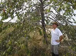 Mide entre 15 y 25 m de altura. Su corteza es lisa y es fácil de desprender en forma de guasca. Sus hojas elíptica son simples y alternas. Posee flores agrupadas en inflorescencias axilares, sus flores poseen seis pétalos y fuerte olor. Los frutos están agrupados en fascículos de unas 20 unidades.