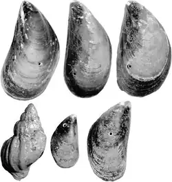 - ↑ Gordillo, Sandra; Archuby, Fernando (2012-09). «Predation by Drilling Gastropods and Asteroids Upon Mussels in Rocky Shallow Shores of Southernmost South America: Paleontological Implications». Acta Palaeontologica Polonica (en inglés) 57 (3): 633-646. ISSN 0567-7920. doi:10.4202/app.2010.0116. Consultado el 16 de julio de 2024.
