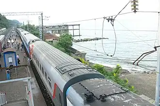 - Vista de los andenes de la estación de ferrocarril (enlace roto disponible en Internet Archive; véase el historial, la primera versión y la última). en Panoramio