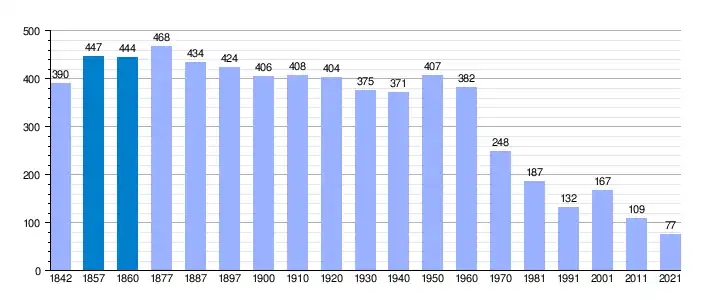 Gráfica de evolución demográfica de Yélamos de Arriba[2]​ entre 1842 y 2021