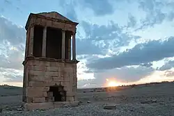 Los tres mausoleos mejor conservados, de los cuales hay tres, difieren en su forma: un mausoleo cuadrado que descansa sobre una base de tres niveles y está rodeado de pilastras acanaladas; un mausoleo tetrástilo en excelente estado, que descansa sobre una base rectangular de cuatro por cinco metros y similar a la cella de un templo precedido por cuatro columnas corintias, todo ello rematado por un simple entablamento formado por un arquitrabe y un frontón; y finalmente un mausoleo hexagonal que descansa sobre una base de tres niveles y que consta de dos pisos terminados cada uno en una cornisa.