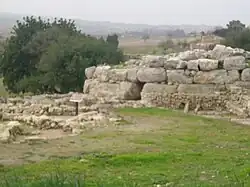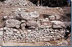 Tiene una estructura lineal (hilada de piedras). Se localiza delimitando el yacimiento por el oeste. La técnica constructiva usada para su elaboración fue la ciclópea, con bloques de una dimensión media de 0,49 m de anchura y 1,36 m de longitud. En cuanto a la longitud de la propia unidad, es de 18,05 m y con una anchura de 0,60 m. La altura máxima de la muralla es de 1,20 m y la mínima de 0,26 m, lo que da una media de 0,73 m.