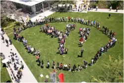 Empleados de Yahoo! formando el símbolo de la empresa, la Y!