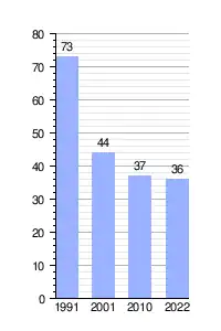 El censo 2022 registró una población de 36 habitantes que se repartieron entre 23 hombres y 13 mujeres. Sin embargo, las cifras obtenidas fueron estimativas solo teniendo en cuenta a la población en viviendas particulares; es decir, excluyendo del dato a la población institucional y las personas sin hogar. Gracias a este censo también fue posible conocer su densidad y tamaño urbano.[2]
