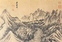 - Jeong Seon 장안사(長安寺) en el Álbum Pungakdo del año Sin-myo 辛卯年楓岳圖帖 1711,
