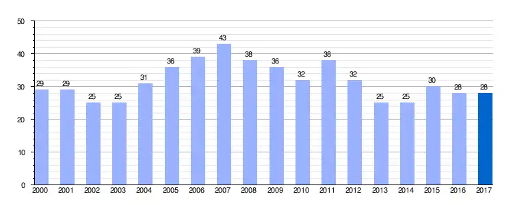 | Gráfica de evolución demográfica de Yeres entre 2000 y 2017 |