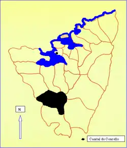 - ↑ Miralbes Bedera, Rosario; de Torres Luna, María Pilar; Rodríguez Martínez-Conde, Rafael (1979). «Ortigueira». Mapa de límites de las parroquias de Galicia. Santiago de Compostela: Imprenta Paredes. p. 19. ISBN 8460014142.
