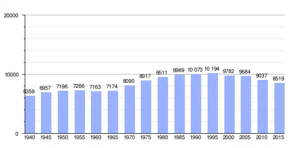 | Gráfica de evolución demográfica de Yokoze entre 1940 y 2015 |