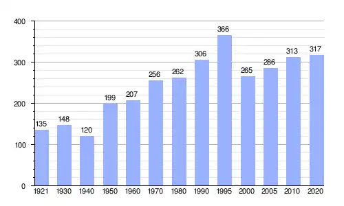 Población de los censos y conteos del Instituto Nacional de Estadística y Geografía (INEGI) de 1921 a 2010.[6] |