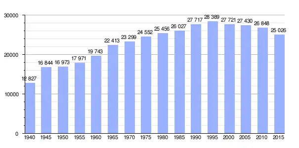 | Gráfica de evolución demográfica de Yugawara entre 1940 y 2015 |