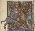 Yvain combate con Gawain. De "Yvain, le Chevalier au Lion" -