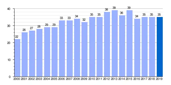 | Gráfica de evolución demográfica de Zárate[3] entre 2000 y 2019 |