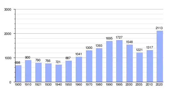 En 2020 registró una población de 2113 personas, lo que corresponde al 4.59 % de la población municipal.[14] De los cuales 970 son hombres y 1143 son mujeres.[14] Tiene 515 viviendas particulares habitadas.[14]