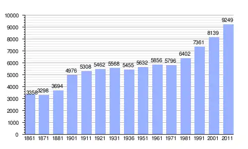 | Gráfica de evolución demográfica de Zafferana Etnea entre 1861 y 2011 |