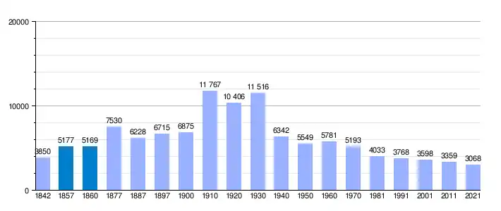 | Gráfica de evolución demográfica de Zalamea la Real[6] entre 1842 y 2021 |