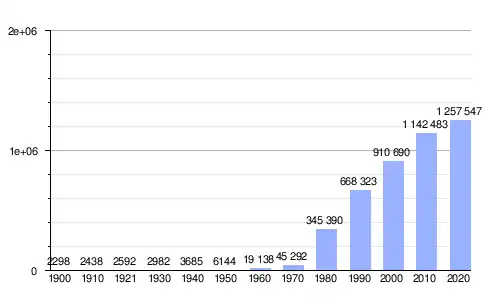 | Gráfica de evolución demográfica de Zapopan entre 1900 y 2020 |