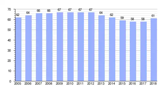 | Gráfica de evolución demográfica de Zarbeling entre 2005 y 2018 |