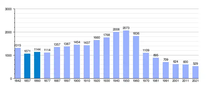 | Gráfica de evolución demográfica de Zarza de Montánchez[5] entre 1842 y 2021 |