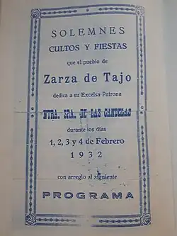Solemnes cultos y fiestas que el pueblo de Zarza de Tajo dedica a su patrona 1932