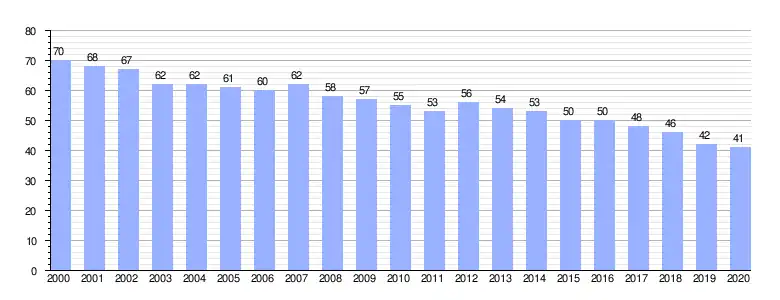 Población de derecho (2000-2020) según los censos de población del INE a 1 de enero de cada año.[9] |