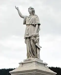 Palmerston, en Otago, tiene una estatua de Zealandia como recuerdo de la participación del país en la Primera Guerra mundial. -