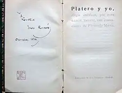 Dedicatoria de Juan Ramón Jiménez a Zenobia Camprubí.