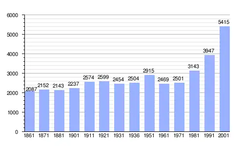 | Gráfica de evolución demográfica de Zibido San Giacomo entre 1861 y 2001 |
