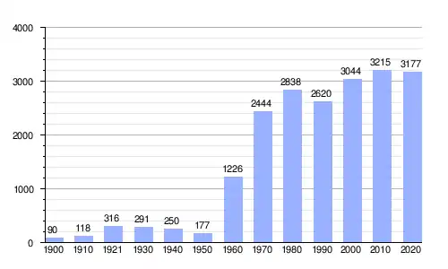 | Gráfica de evolución demográfica de Zicuirán entre 1900 y 2020 |