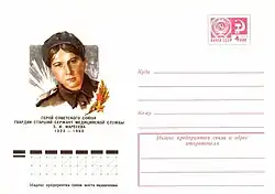 - ↑ filpersona.ru. «Маресева Зинаида Ивановна на почтовом конверте 1977 года». filpersona.ru (en ruso). Consultado el 22 de noviembre de 2022.