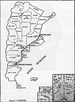 ↑Estado Nación e Identidad Nacional Comodoro Rivadavia 1944–1955. Monografía obtenida del sitio: www.Monografias.com. Fuentes: Archivo General de la Nación: Memorias de los Gobernadores de los Territorios Nacionales, Boletines del Ministerio del Interior: Varios años, Diario El Rivadavia, Diario El Chubut